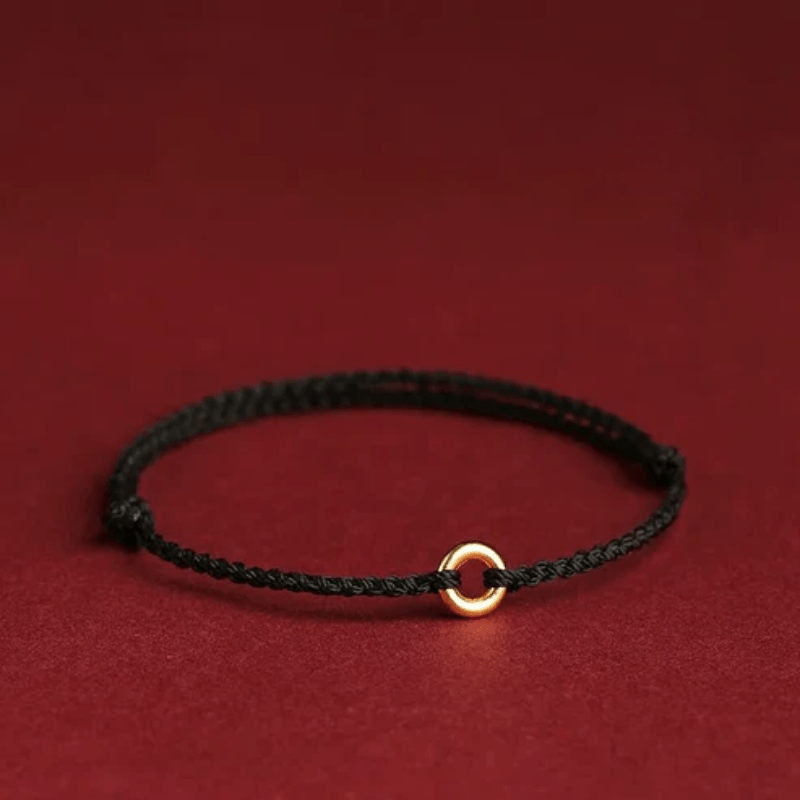 Geluksarmband met Goudkleurige Cirkel – Handgeweven – Verstelbaar Uniseks Sieraad