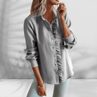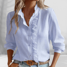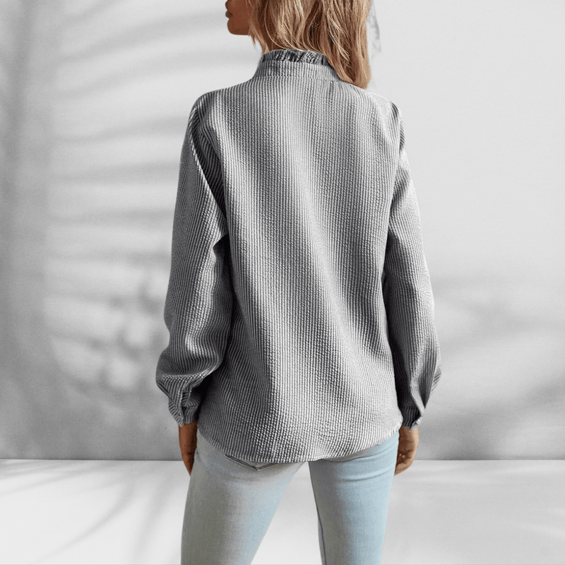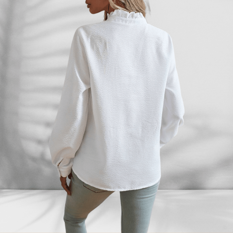Maak je outfit compleet met de Blouse met Volantdetails – een stijlvol kledingstuk dat eenvoud en elegantie in balans brengt.