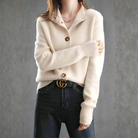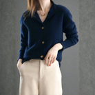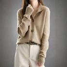 Omhul jezelf met verfijnde zachtheid — bestel nu de Kasjmier Knopen Cardigan en voeg een vleugje luxe toe aan je dagelijkse garderobe.