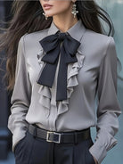 Voeg tijdloze elegantie toe aan je garderobe – bestel nu de Langsleeve Blouse Met Knoopsluiting En Gerimpelde Strik en straal stijl uit bij elke gelegenheid.