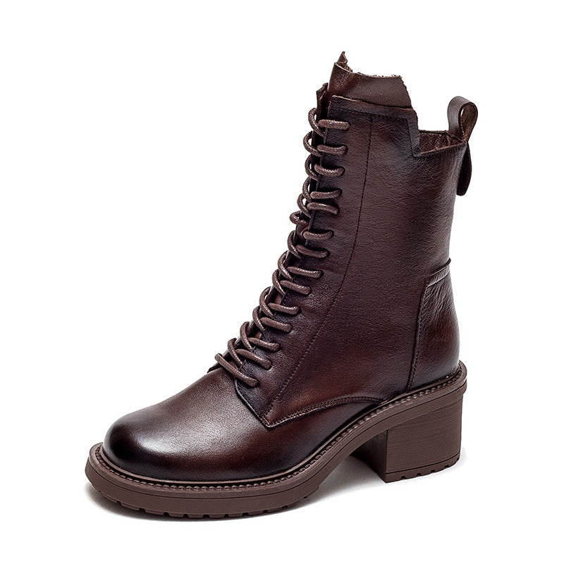 Retro Leren Rits Wedge Boots – Dames Laarzen met Hoge Hak & Comfortabele Pasvorm