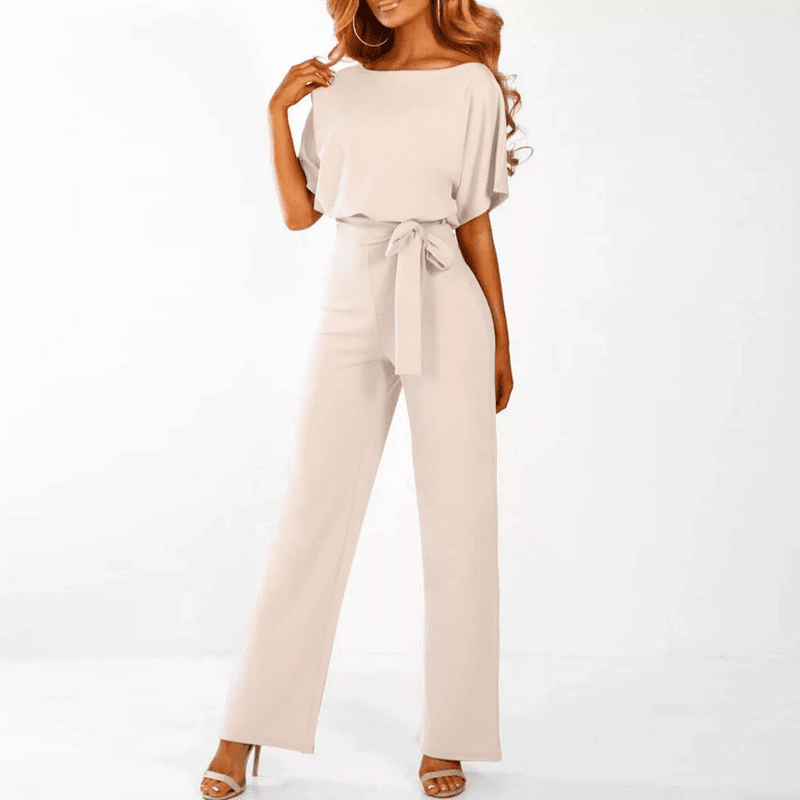 Elegante Jumpsuit met Wijde Pijpen en Tailleband – Flatterende Pasvorm voor Speciale Gelegenheden