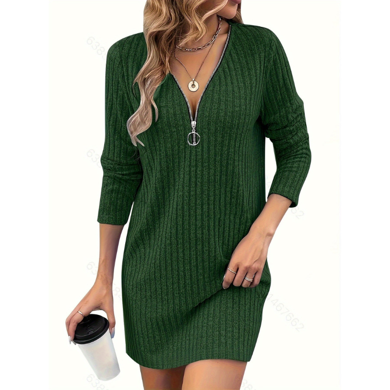 Mini Jurk met Rits en Lange Mouwen – Casual Jurk voor Dagelijks Gebruik