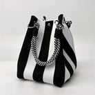 Speels en toch verfijnd: de Mini Bucket Bag combineert een moderne, sculpturale vorm met opvallende strepen of patchwork-design. Gemaakt van een duurzame mix van canvas en nylon, is deze tas zowel stijlvol als praktisch.