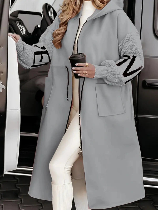 Lange Hooded Coatigan – Elegante Gebreide Cardigan Jas met Zakken