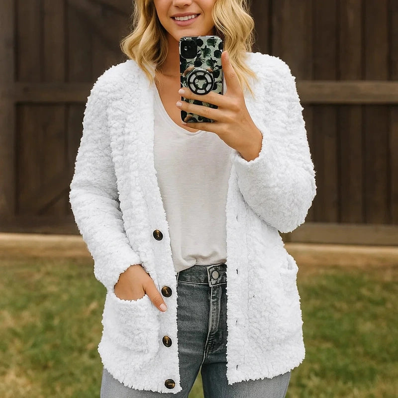 Dames Pluche Vest – Zacht Casual Jasje met Ontspannen Pasvorm en Zakken