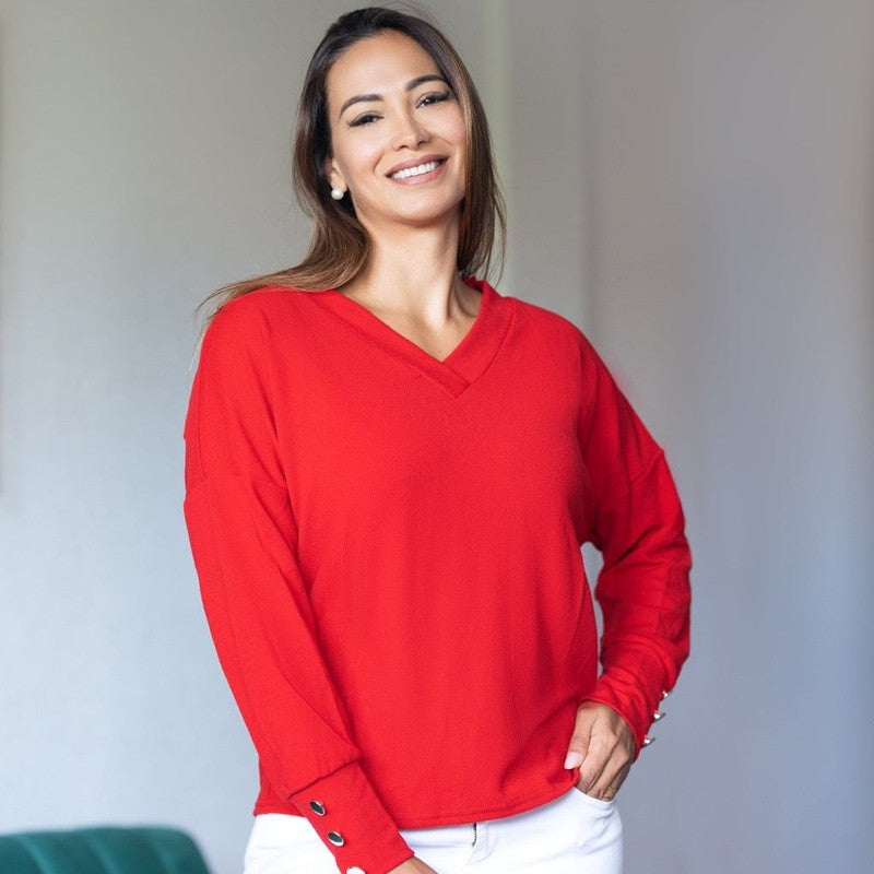 Het elegante V-hals ontwerp benadrukt subtiel de halslijn en geeft elke outfit een vrouwelijke uitstraling. De slim fit snit accentueert het silhouet, terwijl de gebreide textuur warmte en zachtheid biedt. Dit veelzijdige kledingstuk laat zich eenvoudig combineren met jeans, rokken of nette broeken, waardoor je er altijd stijlvol uitziet – of je nu naar kantoor gaat of een avondje uit.