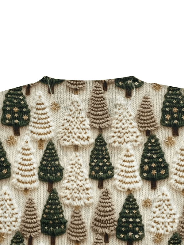 Kersttrui Dames met Kerstboomprint – Zachte en Comfortabele Trui voor de Feestdagen, Klassieke Ronde Hals