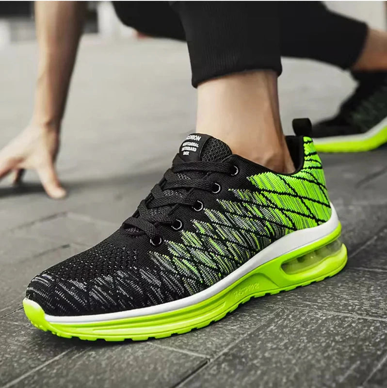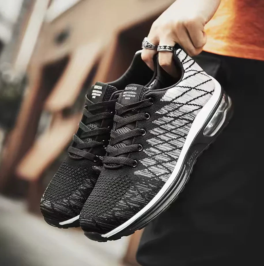 Ontworpen voor comfort en ondersteuning, beschikken deze sportsneakers over een schokabsorberende luchtkussenzool die de impact tijdens het lopen, trainen of dagelijks gebruik helpt verminderen. Het ademende materiaal en het flexibele ontwerp maken de schoenen geschikt voor verschillende sportieve en alledaagse activiteiten.