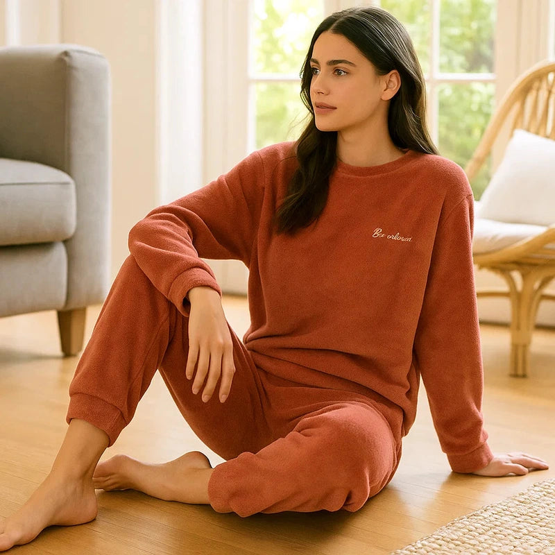 Dames Loungewear Set Fleece – Zachte Tweedelige Pyjama voor Thuis en Nachtkleding