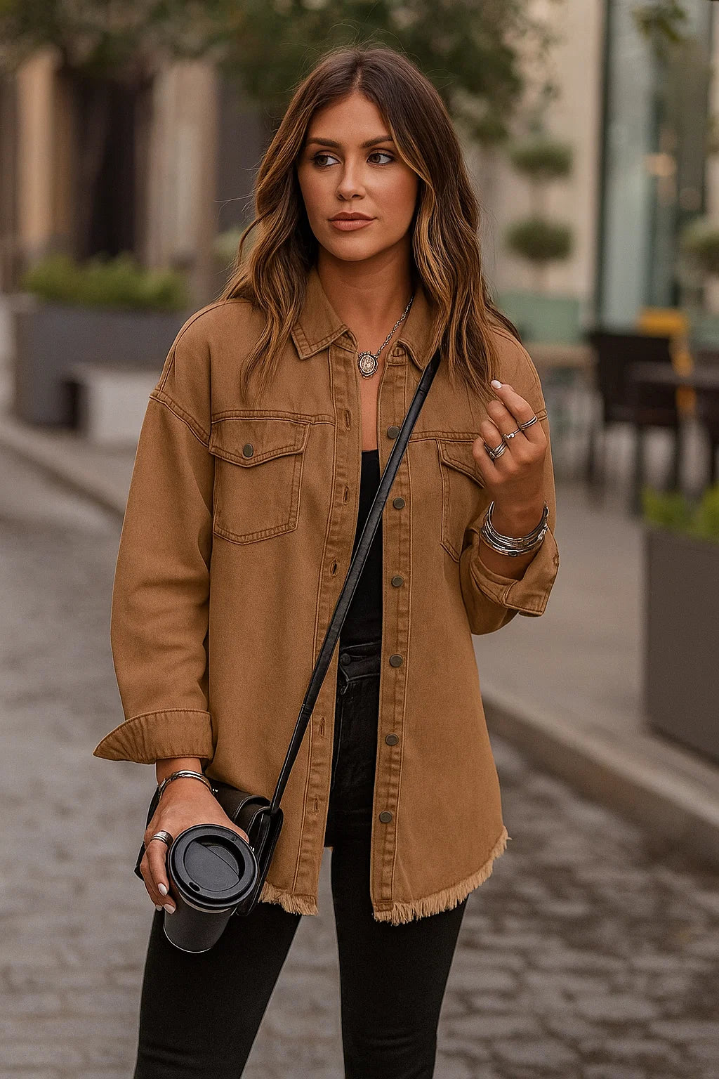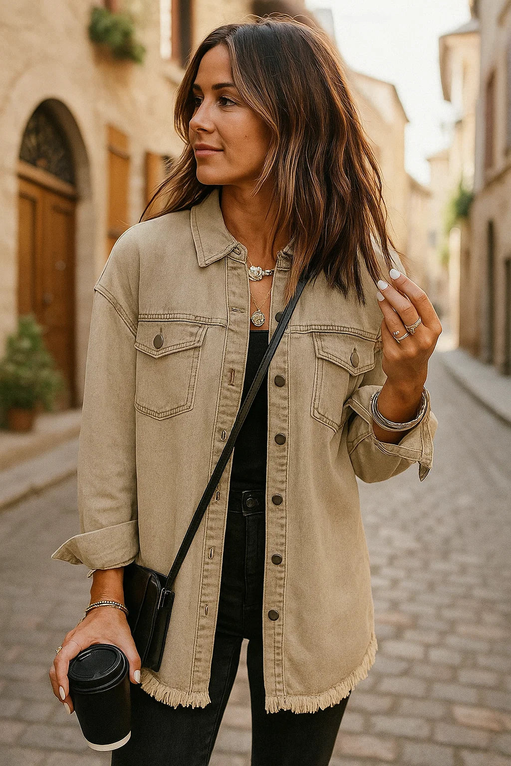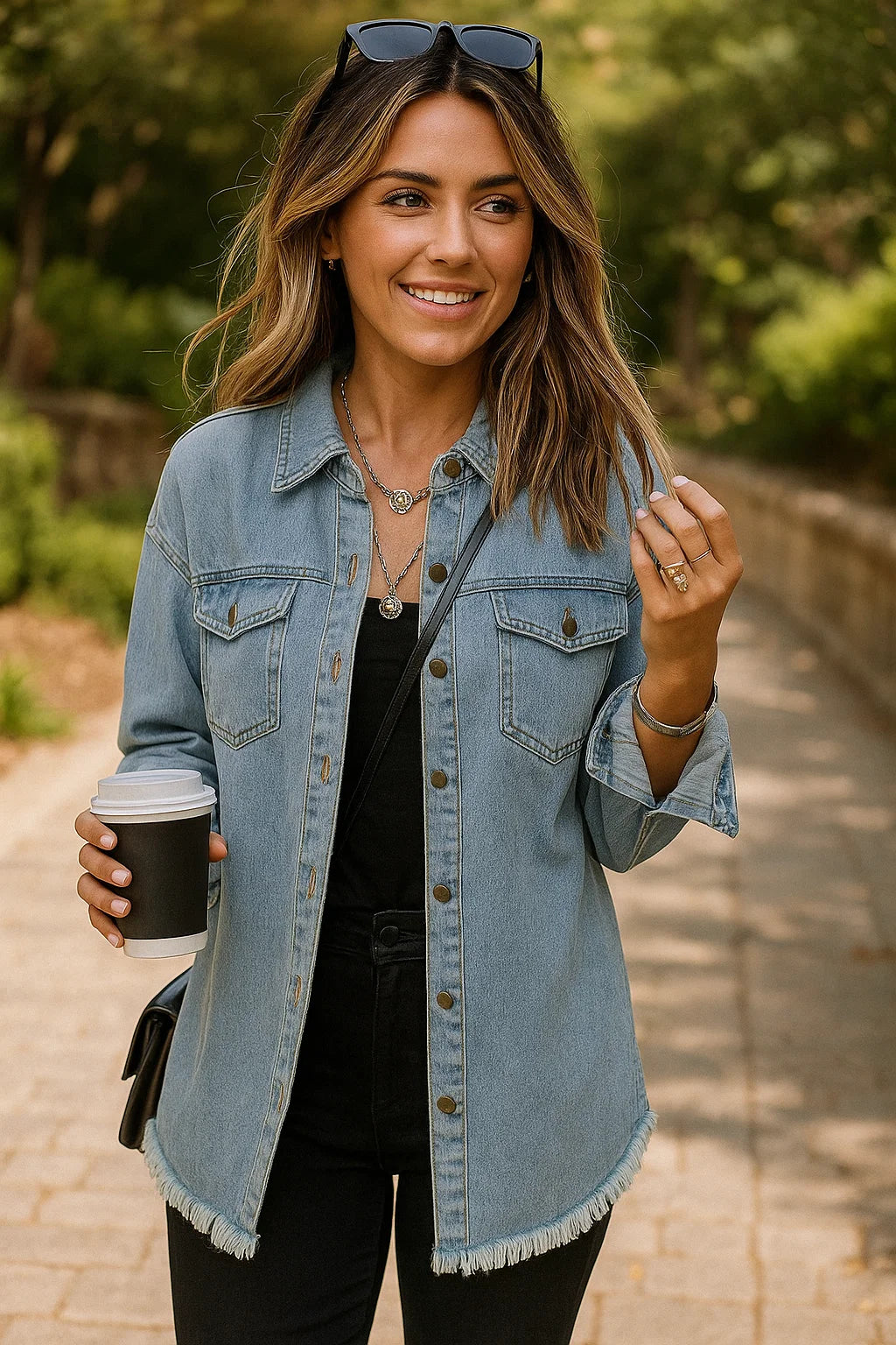 Verpakking bevat: 1 Oversized spijkerjas met ruwe zoom en zakken