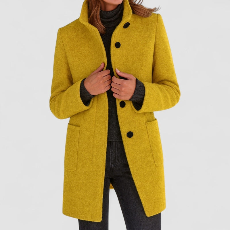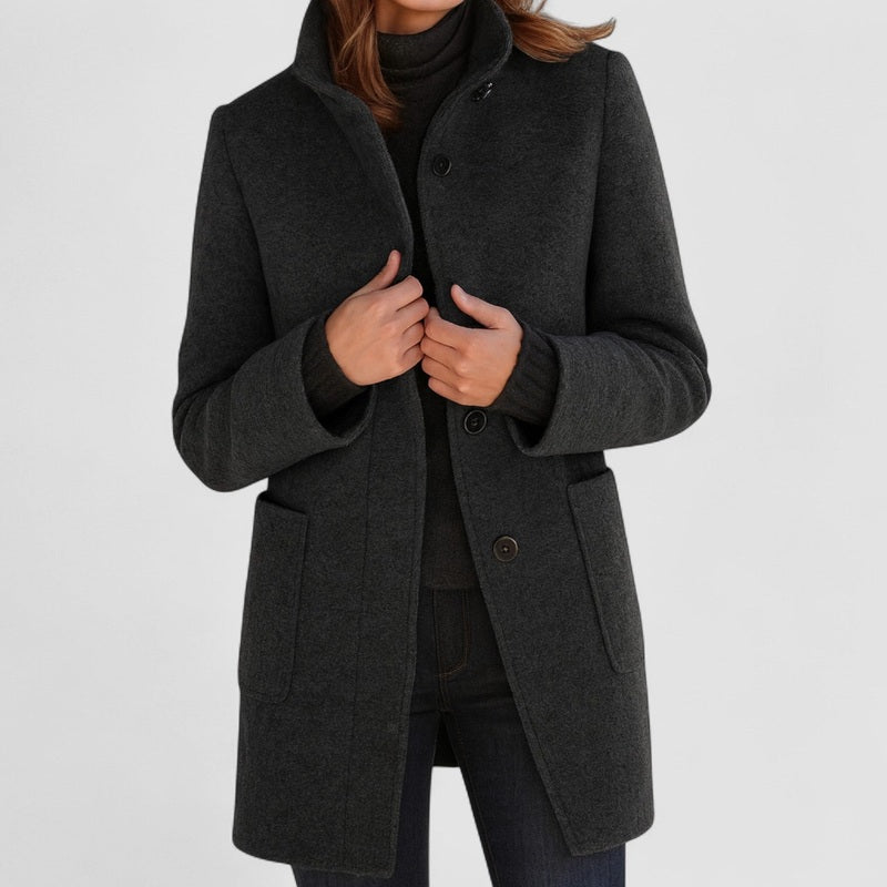 Ontdek de perfecte balans tussen minimalistische elegantie en praktisch comfort met de Stilhaus Bern | Tijdloze Lijnen Mantel. Ontworpen in de geest van Scandinavische eenvoud, straalt deze mantel rust, stijl en verfijning uit. Met zijn zachte lijnen, hoge kraag en doordachte pasvorm is dit de ideale keuze voor vrouwen die moeiteloze klasse waarderen — van stadswandeling tot zakelijke meeting.