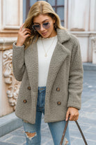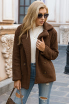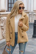 Design: Teddy-look met effen kleur, reverskraag en dubbele knoopsluiting