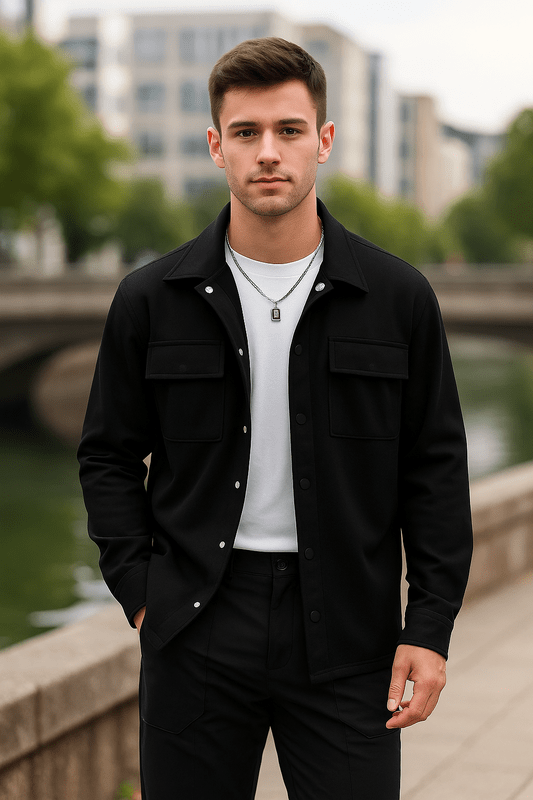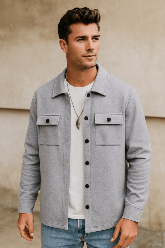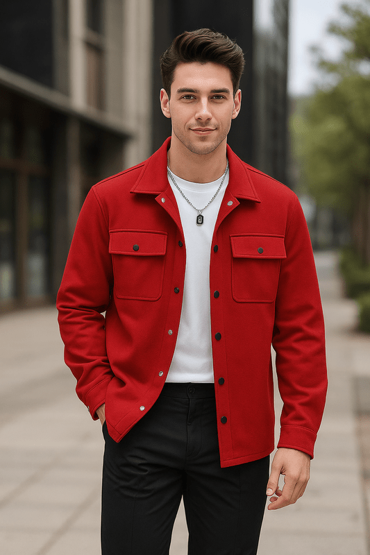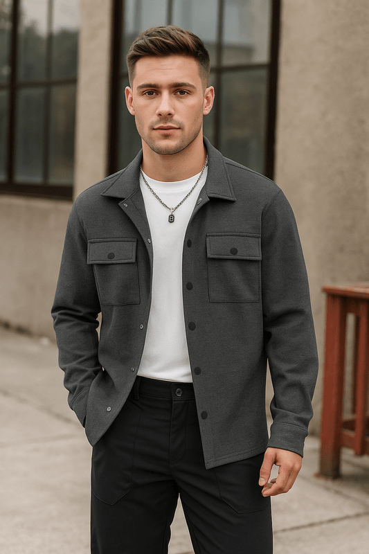Heren Slim Fit Overhemdjas – Effen Kleur, Lange Mouwen, Revers, Herfst Winter Jas met Borstzak