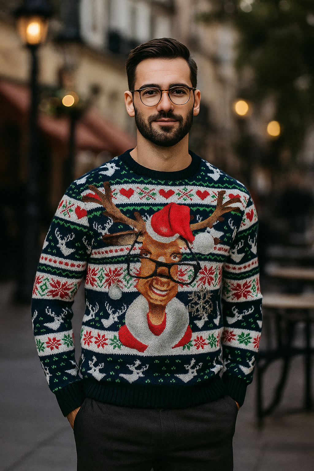 Unisex Foute Kersttrui met Rendieren en Sterren – Comfortabele Lelijke Kersttrui voor Dames en Heren