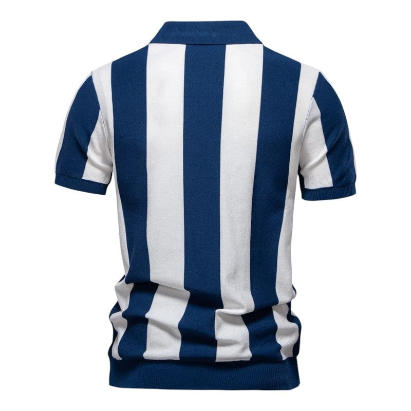 Gedurfde strepen, strakke lijnen en een retro ritskraag maken dit Poloshirt tot een echte blikvanger. Geïnspireerd op vintage voetbalshirts, straalt het een sportieve en tegelijk verfijnde uitstraling uit. Gemaakt van een ademende viscosemix met een zachte rek, voelt het shirt comfortabel aan en biedt het een flatterende pasvorm die je moeiteloos de hele dag kunt dragen. Perfect voor weekenduitjes, casual avonden of een sportieve look in de stad.