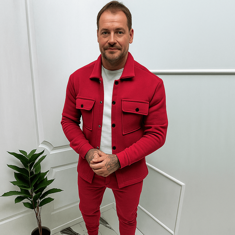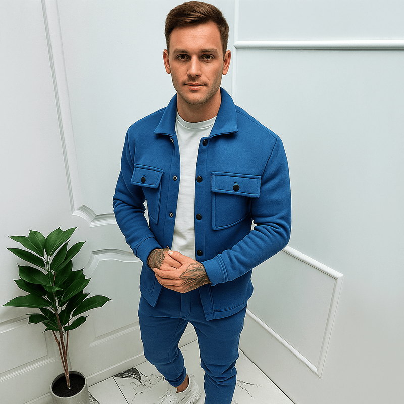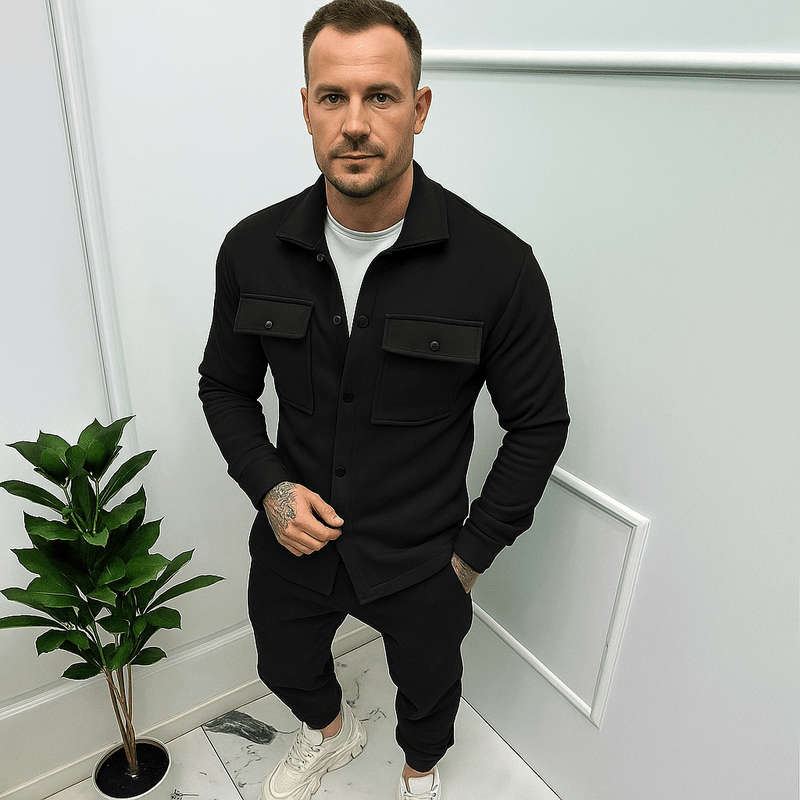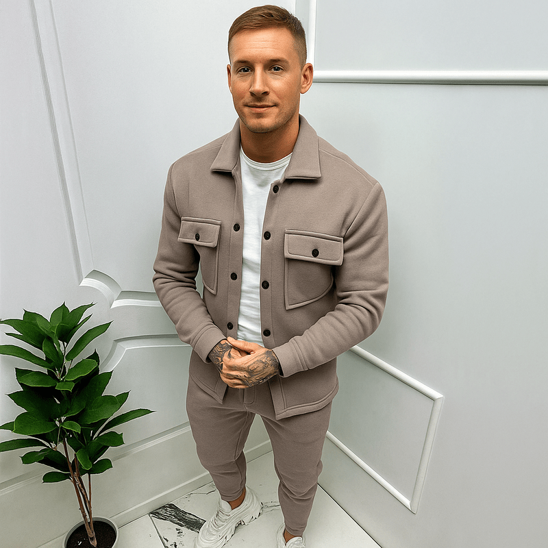 Verfijnde Tweedelige Set – Slim-fit Sportieve Herenoutfit met Jas & Broek