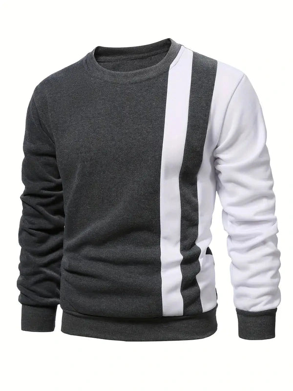Heren Lange Mouw Sweatshirt met Contrasterende Strepen – Casual Ronde Hals Pullover