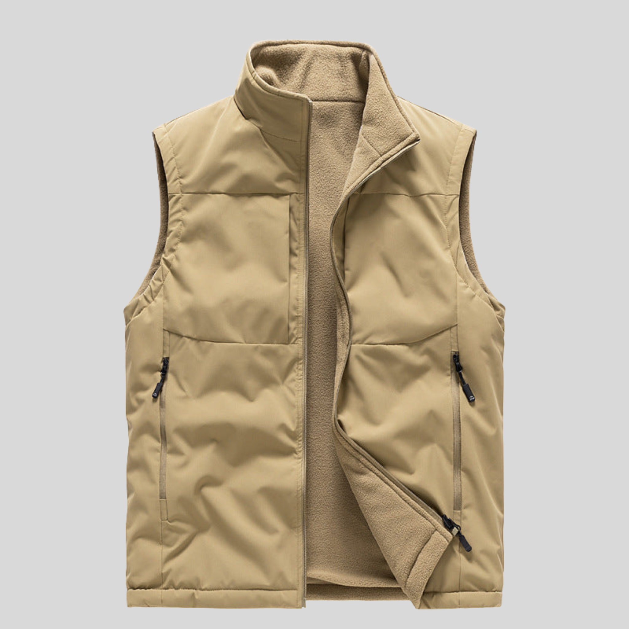 Of je nu buiten aan het werk bent of geniet van een ontspannen weekendwandeling, het Dubbelzijdig Fleece Vest biedt de perfecte combinatie van warmte, comfort en praktische stijl.