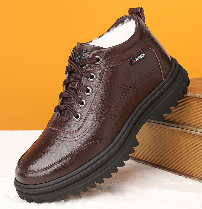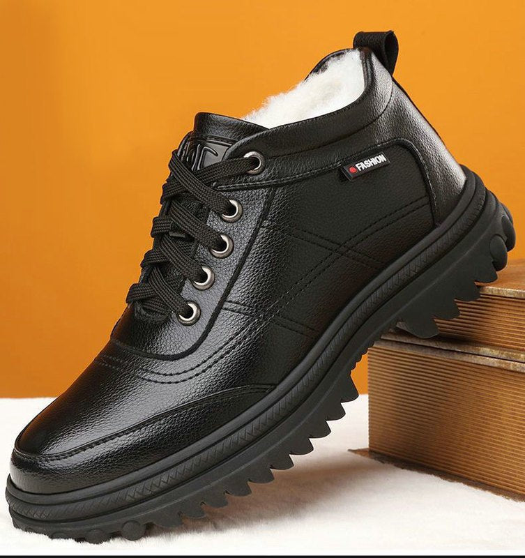 Heren Leren Sportlaarzen – Warme Fleece Binnenvoering, Waterdicht & Antislip
