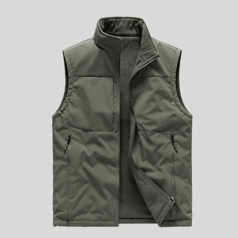 Of je nu buiten aan het werk bent of geniet van een ontspannen weekendwandeling, het Dubbelzijdig Fleece Vest biedt de perfecte combinatie van warmte, comfort en praktische stijl.