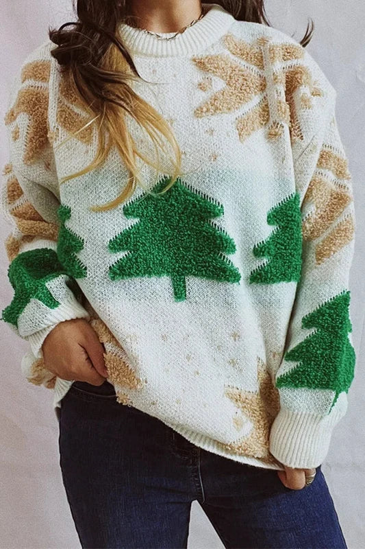 Gebreide Kersttrui met Patroon – Warme Damestrui met Ronde Hals en Lange Mouwen