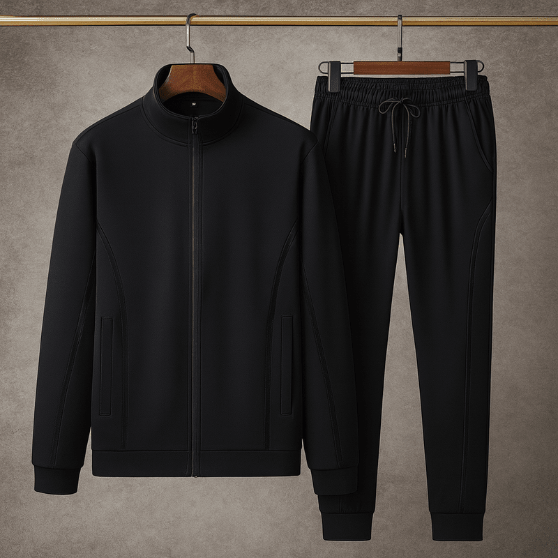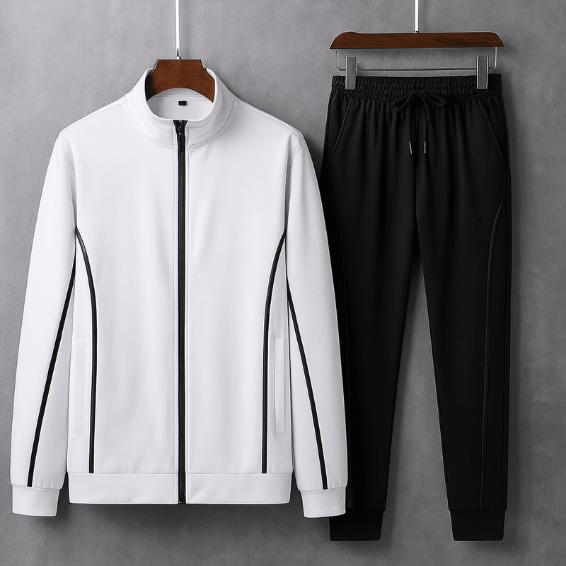 Premium Tracksuit voor Heren – Luxe Trainingspak met Contour Piping en Dubbelgebreide Performance Blend