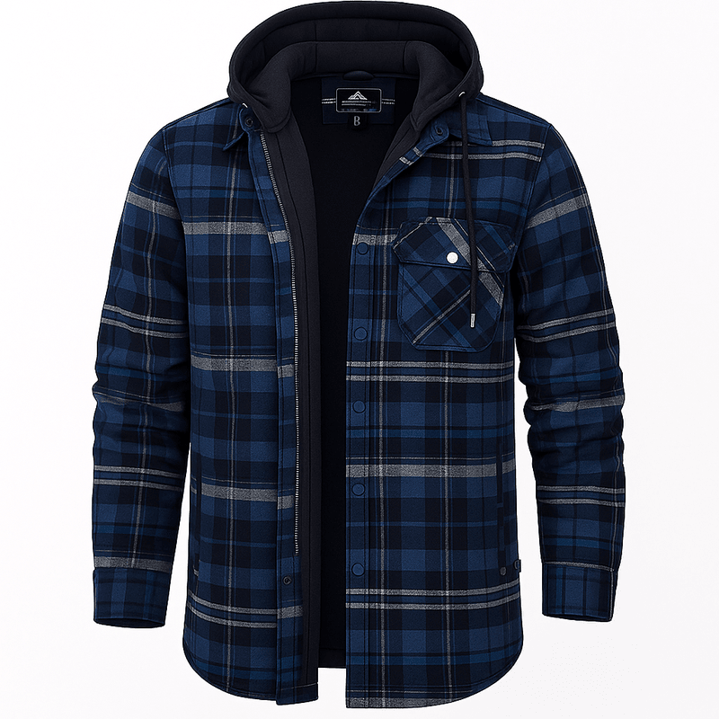 Dikke Winter Herenjas met Ruitpatroon en Capuchon – Warme Casual Losvallende Jas met Rits