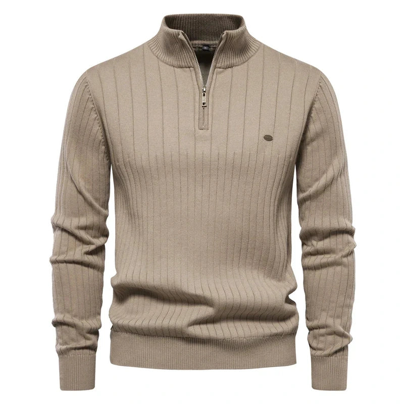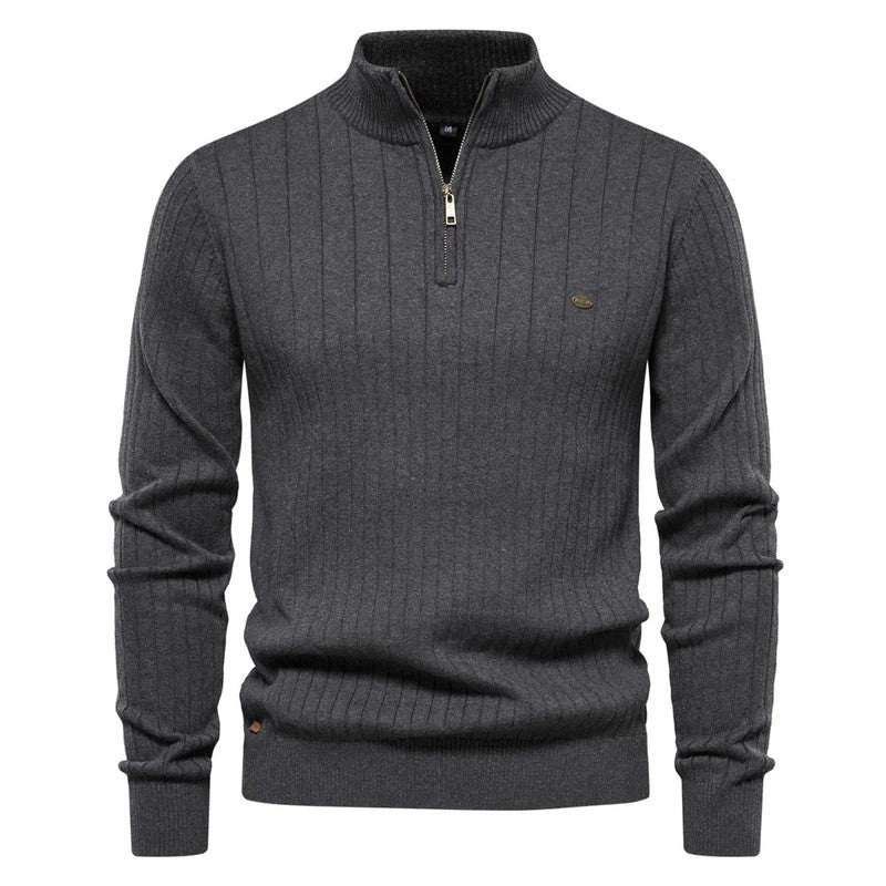 Rits Pullover Trui – Herentrui met Kwart-Rits & Opstaande Kraag