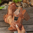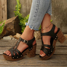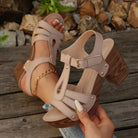 Chique Sandalen met Blokhak voor Dames – T-Strap, Stud Accenten & Comfortabele Gevoerde Binnenzool